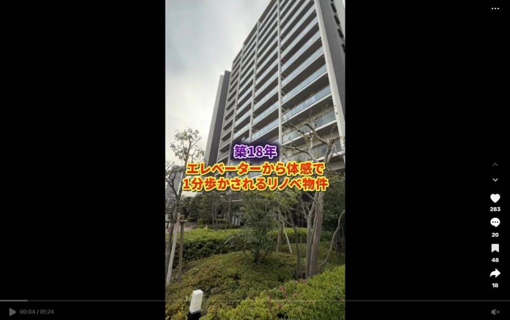 物件の魅力を効果的に伝えるSNS向け動画。内装や立地の良さを短時間で印象的に表現し、高い反響を獲得。